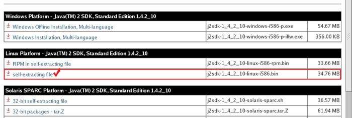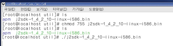 2. j2sdk.....bin 파일은 바로 실행파일이다. 다운을 받고 나면 파일에 실행권한을 주고